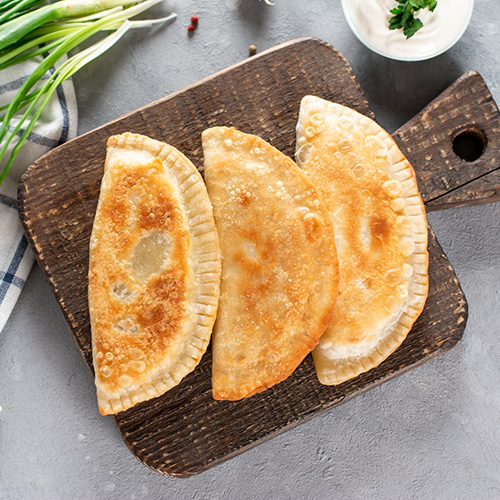 Verdura: (Ingredientes: acelga, harina0000, agua, carne molida, cebolla, leche en polvo, sal, margarina, rebozador, morrón, nuez moscada, caldo de gallina. Aditivos: conservador (IN202), acidulante (IN355), antioxidante (IN300))